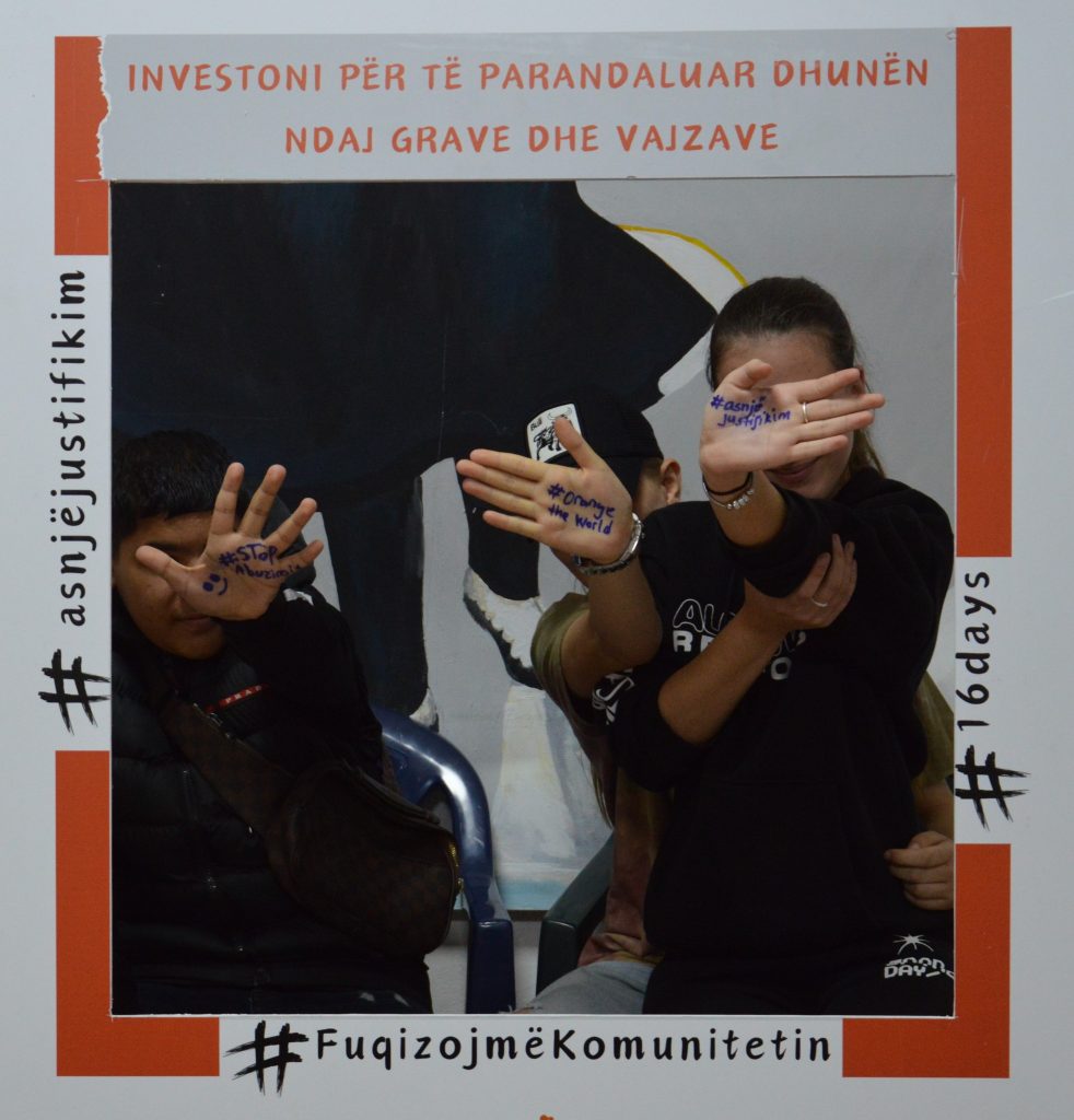 On the International Day for the Elimination of Violence against Women and Girls, aiming to raise awareness under the global slogan “Invest in preventing violence against women and girls,” they took photos at the set-up photo-frame in the Resilience Center in Kurbin and at the Children’s Cultural Center in Lezha.