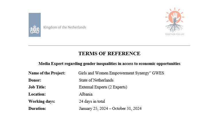 To better fulfill project’ overall objective and expected results, the Association is seeking to contract a Professional Media Expert to join the staff of TFL and provide specific expertise for specific duties as required in TORs attached to this call.