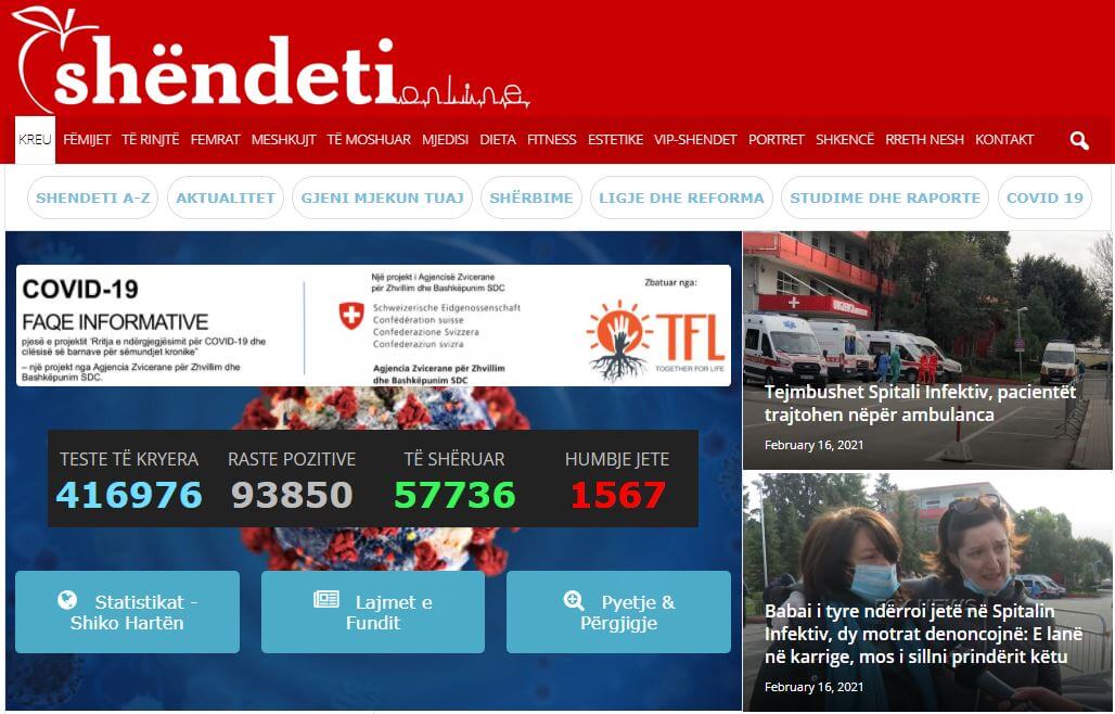 - Një faqe informative COVID-19 krijuar në platformën online “Shëndeti.com.al”.