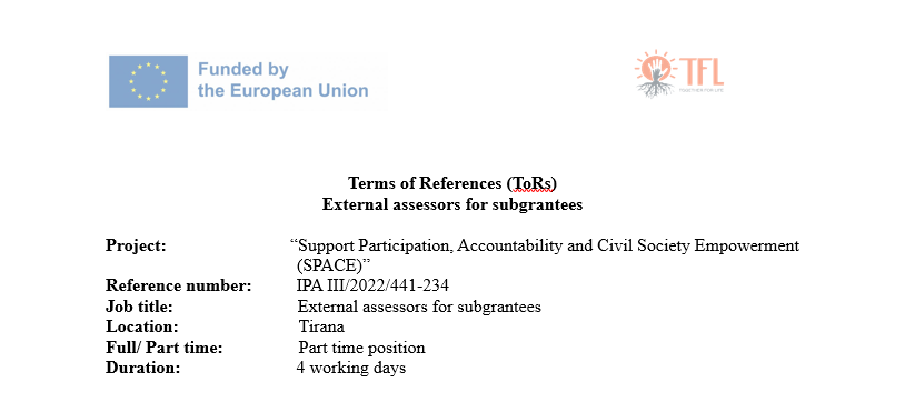 “Together for life” association, in cooperation with BIRN Albania, Qëndresa Qytetare and Destiny Center for Excellence, is implementing the project “Support Participation, Accountability and Civil Society Empowerment” (SPACE). This project is funded by the European Commission, reference EuropeAid/174080/DD/ACT/.