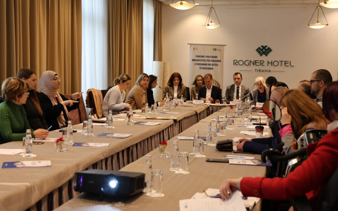 The findings of the report “Effects of the implementation of the disability assessment scheme based on the bio-psycho-social model”, prepared by Together for Life with the financial support of the Embassy of Sweden in Tirana, were presented during a roundtable discussion with the participation of representatives from central institutions, independent human rights institutions, the State Social Service, the State Inspectorate of Labor and Social Services, the National Employment and Skills Agency, the Municipality of Tirana, the Municipality of Kamëz, as well as civil society organizations working in the field of disability.