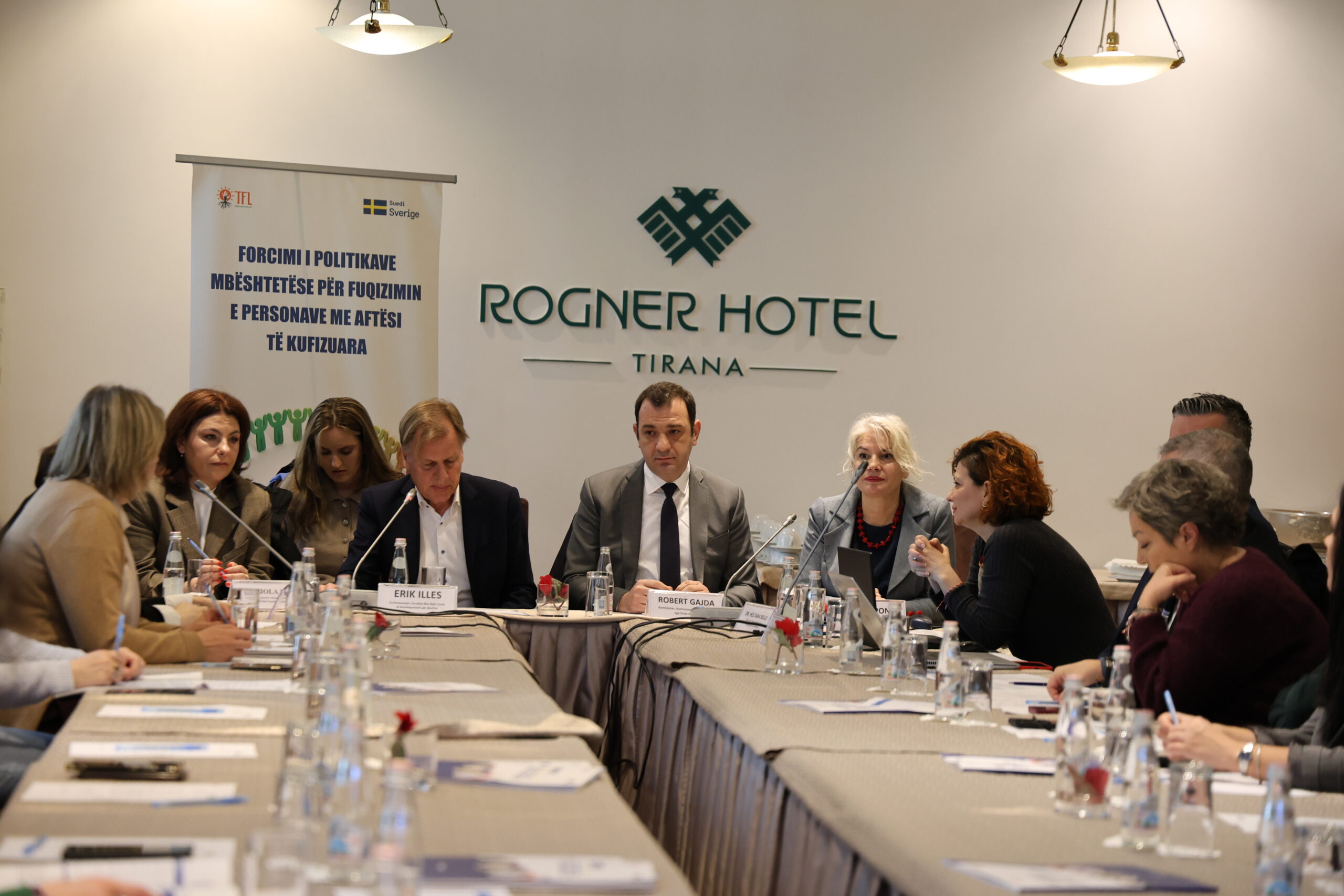 Gjetjet e raportit “Efektet e zbatimit të skemës së vlerësimit të aftësisë së kufizuar bazuar në modelin bio-psiko-social”, realizuar nga shoqata Together for Life me mbështetjen financiare të Ambasadës së Suedisë në Tiranë, u prezantuan në një tryezë të rrumbullakët me pjesëmarrjen e përfaqësuesve të institucioneve qendrore, institucioneve të pavarura të të drejtave të njeriut, Shërbimit Social Shtetëror, Inspektoratit Shtetëror të Punës dhe Shërbimeve Shoqërore, Agjencisë Kombëtare të Punësimit dhe Aftësive, Bashkisë Tiranë, Bashkisë Kamëz, si dhe organizatave të shoqërisë civile që punojnë në fushën e aftësisë së kufizuar.